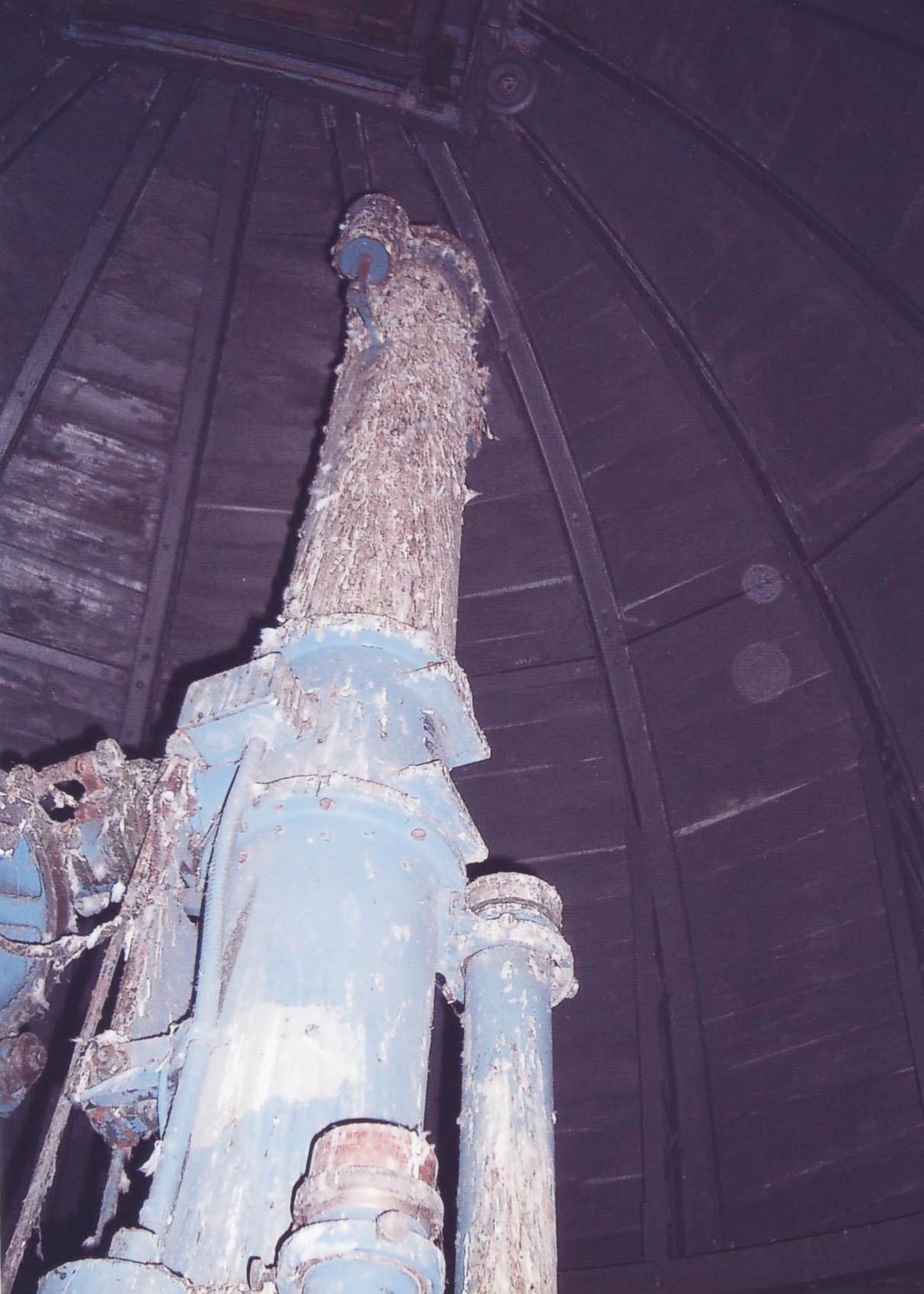 The telescope covered in guano. Brooklyn College Photographic Collection, Brooklyn College Archives.